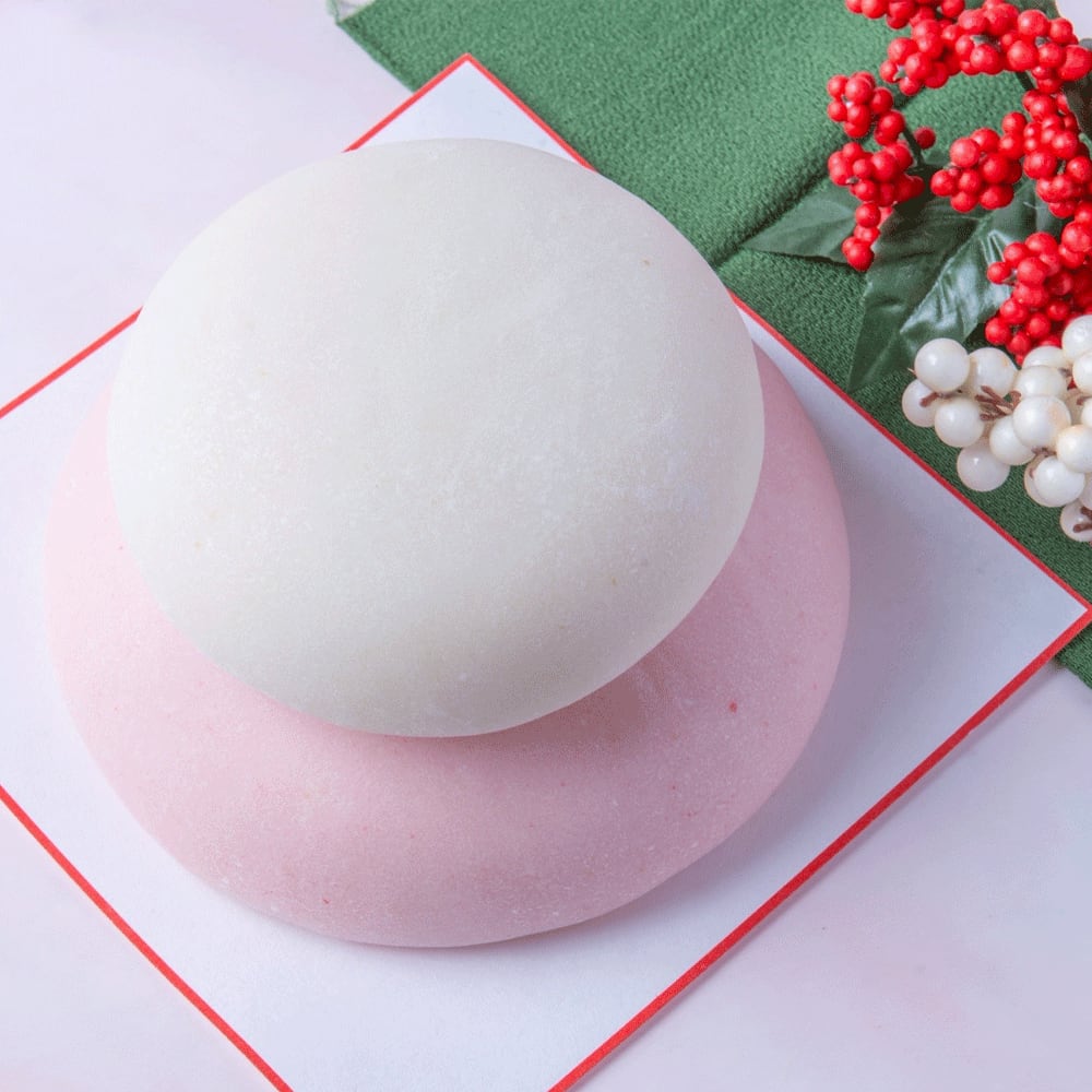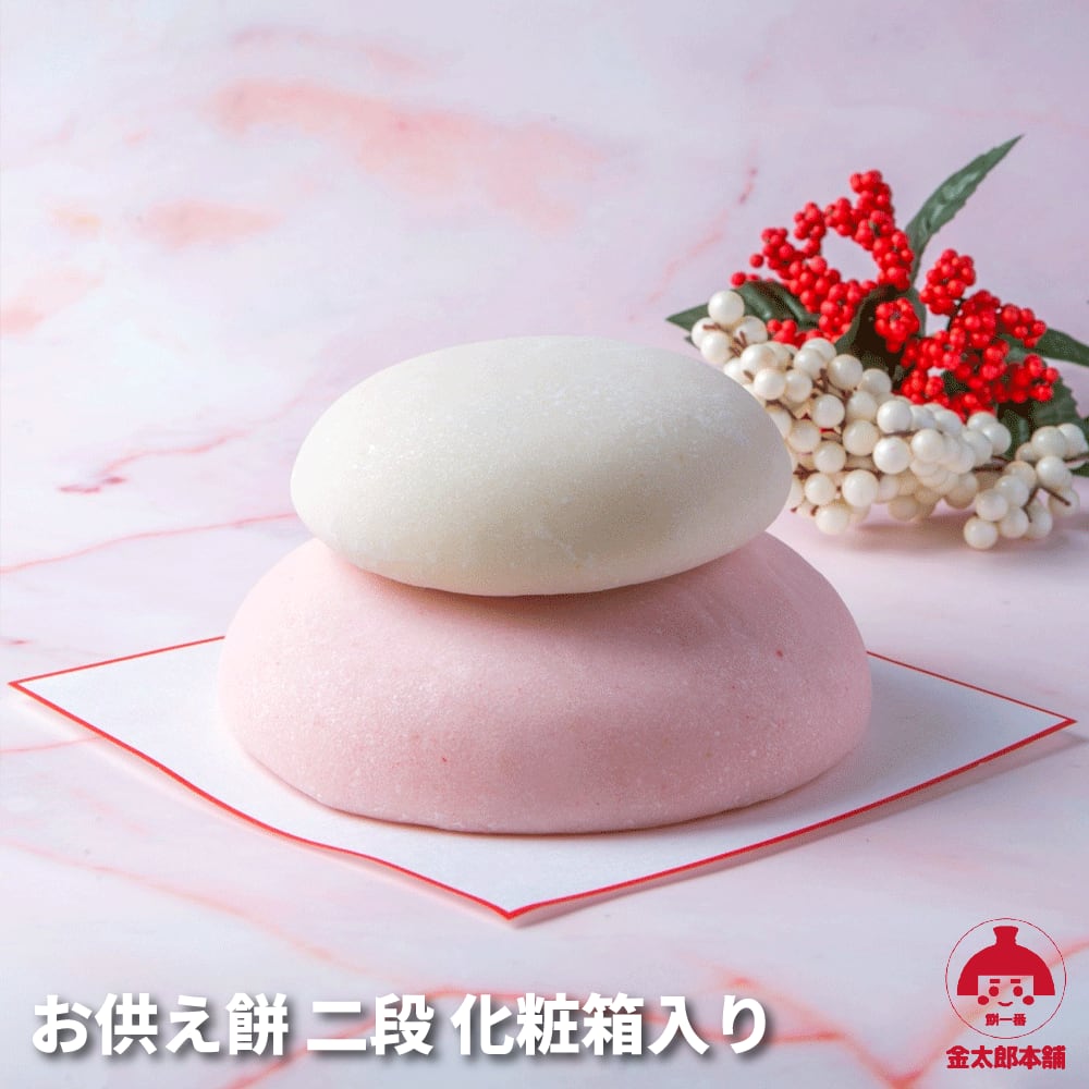 縁起の良い二段のお供え餅を、上品な化粧箱入りでお届けします。